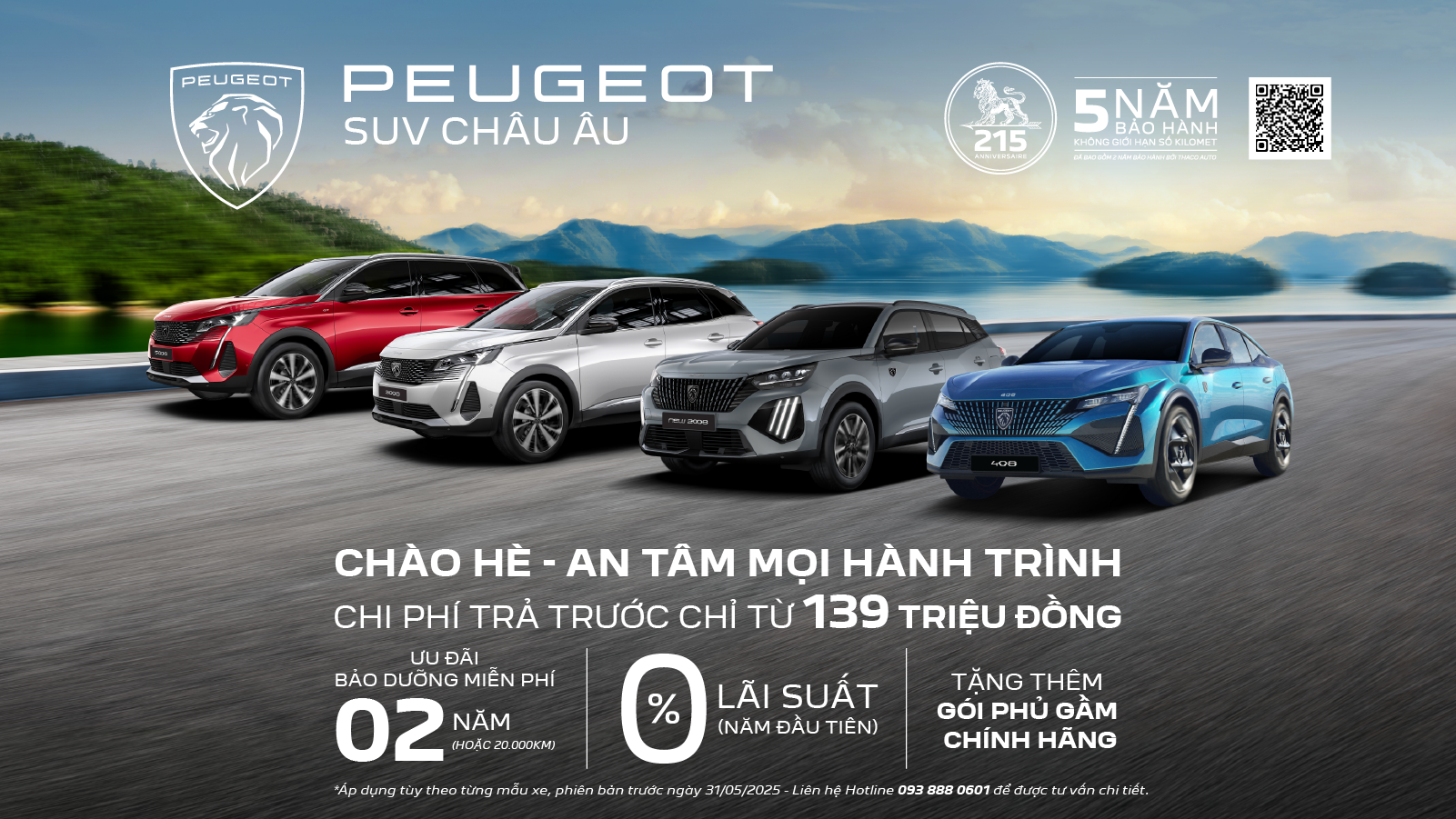 Tặng gói phụ kiện hấp dẫn: Bảo hành chính hãng 5 năm không giới hạn km, bảo hành ác quy 24 tháng, Gói phủ gầm chính hãng, Film cách nhiệt chính hãng của Ilumar bảo hành 5 năm, thảm sàn, lót cốp, bộ quà tặng lưu niệm của Peugeot (Tùy theo dòng xe) – Liên hệ để biết thêm chi tiết